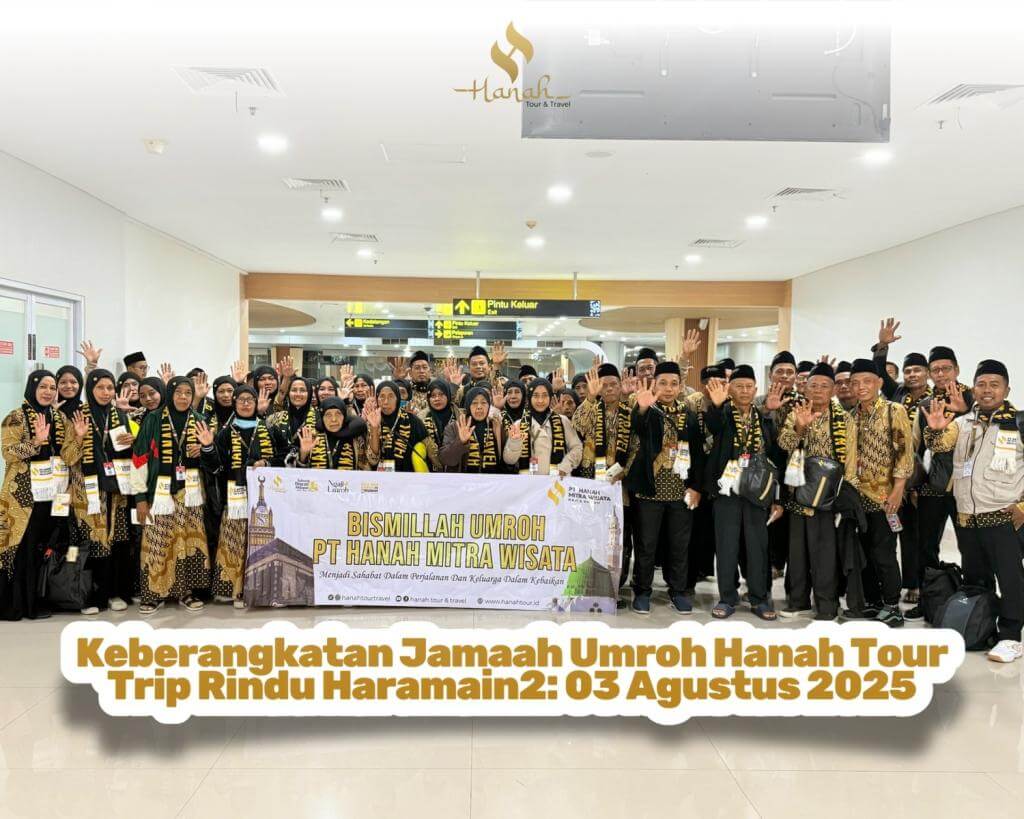 Alhamdulillah, dengan izin Allah SWT, jamaah umroh Hanah Tour resmi diberangkatkan dalam program Trip Rindu Haramain, yang dimulai dengan pelepasan jamaah di Kantor Hanah Tour pada malam hari sebelum keberangkatan.