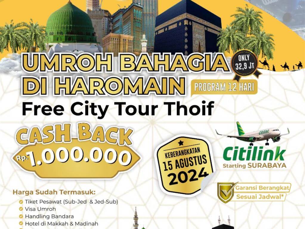 - 30 hari sebelum tanggal keberangkatan, calon jama'ah dikenakan biaya pembatalan sebesar 25% dari harga paket.