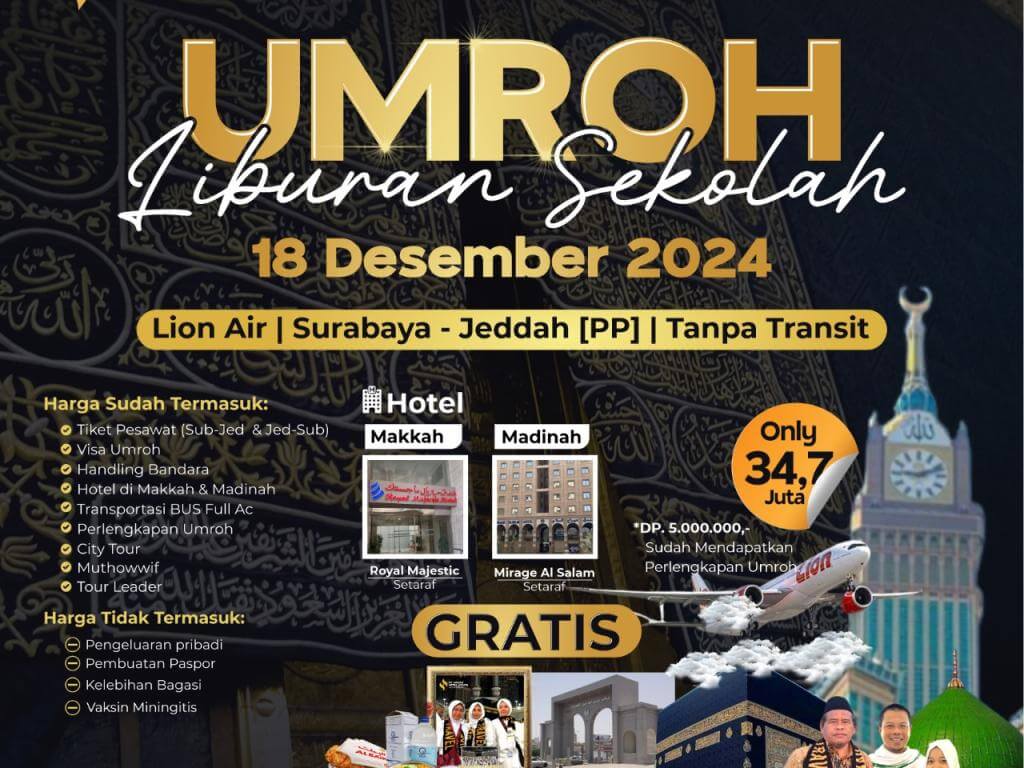 - Pelunasan paket umroh maksimal 30 hari sebelum tanggal keberangkatan